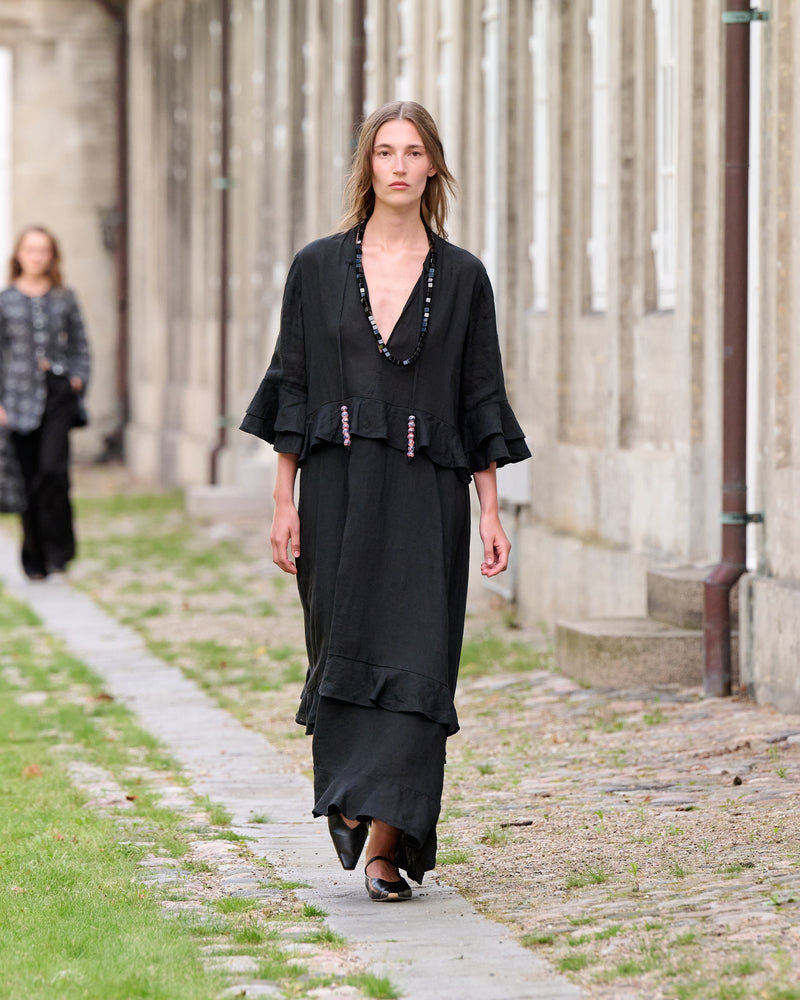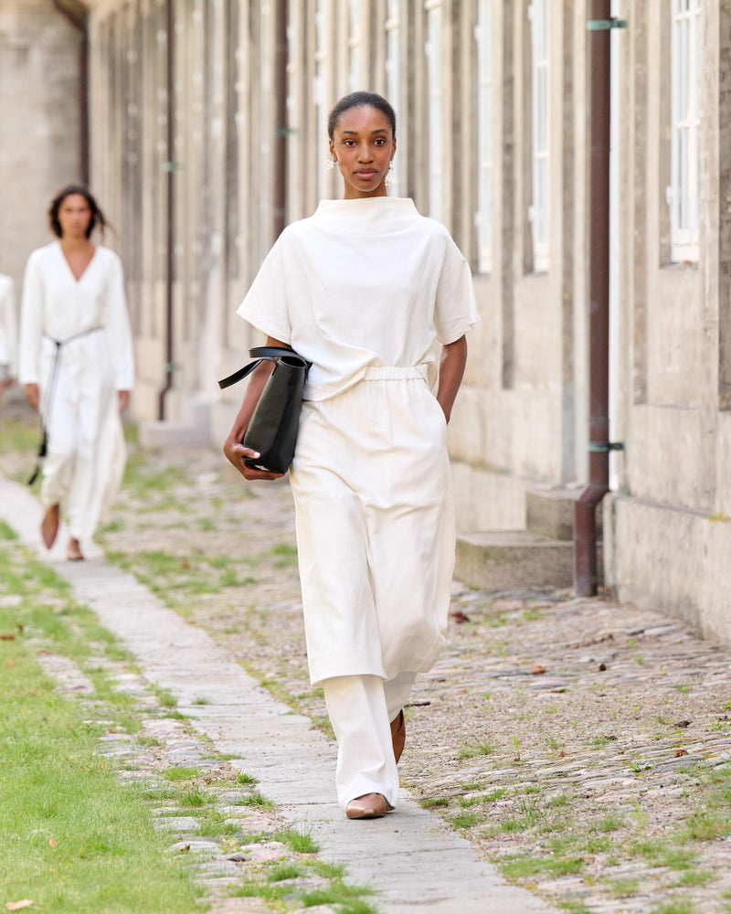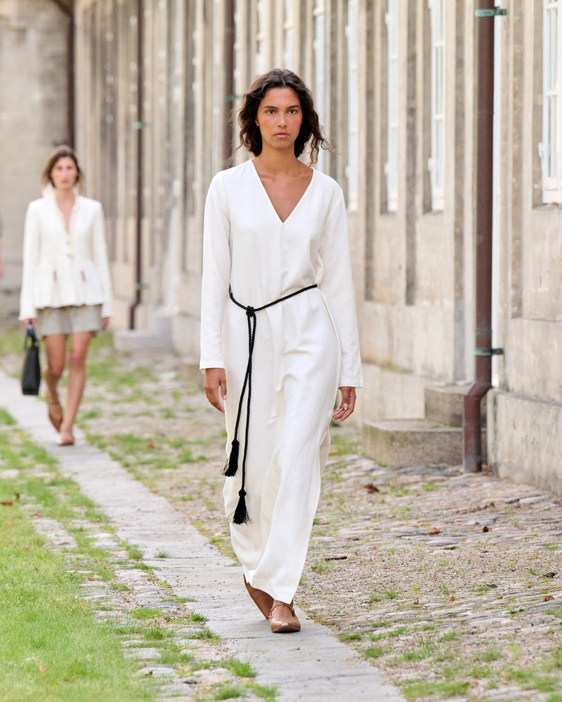 Inspired by early morning light, SS26 captures the calm space where new beginnings take shape. Flowing silhouettes, soft sun-washed tones, and natural fibers move with the body like a dancer guided by instinct.