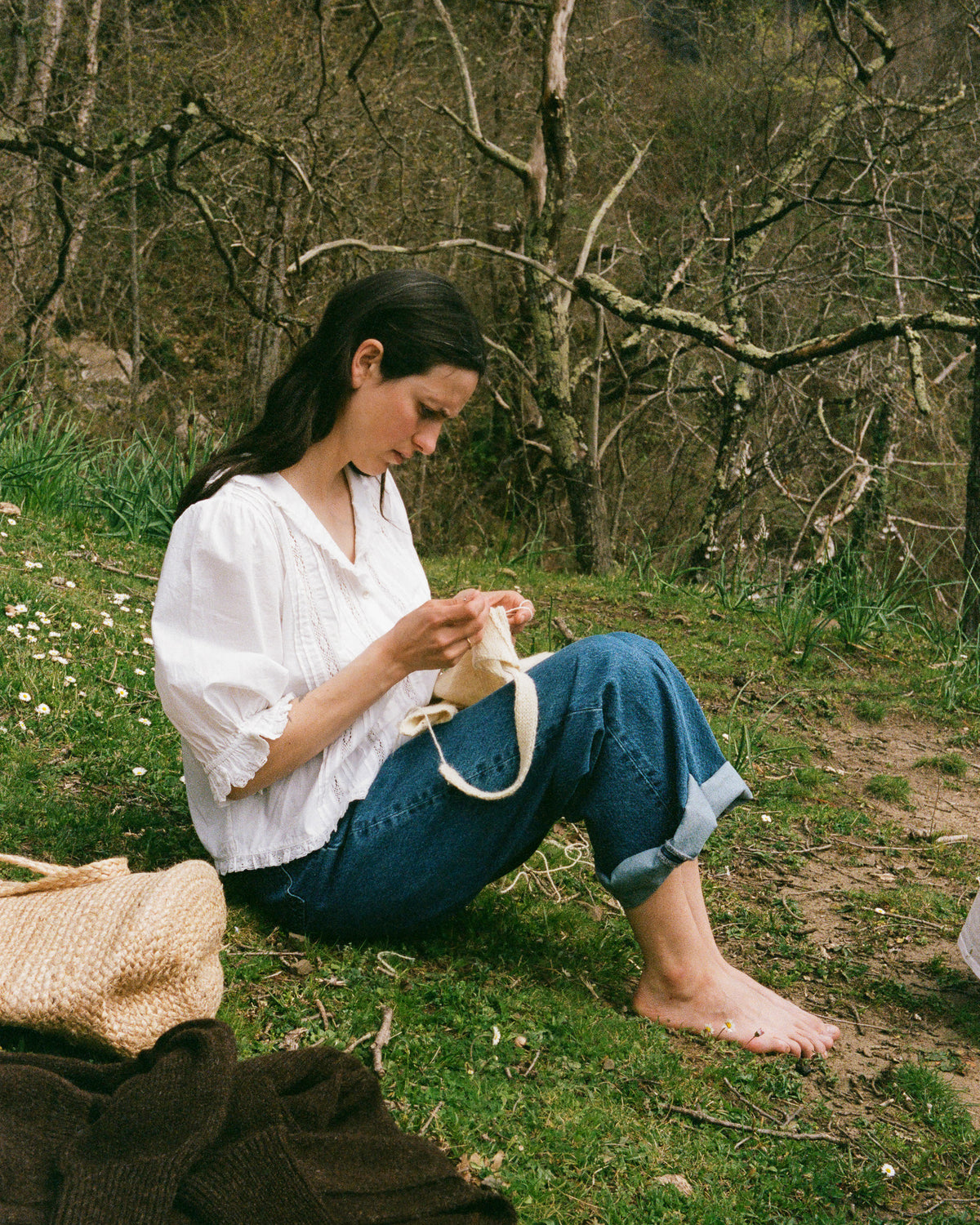 Marina began knitting when her first child was born–simple pieces, made from the wool of their own sheep. She learned from the local women—how they washed, spun, and worked the wool. And from that, her project was born: La Flor Cerval–The Wild Flower.