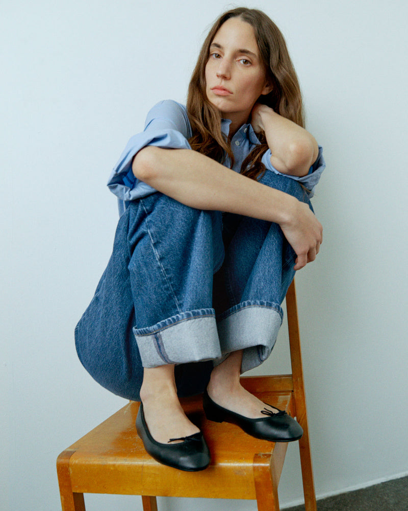 Relaxed, wide-leg silhouette with a low waist. Wear true to size for a loose fit, or size down for a more defined waist