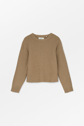 Diana Round Neck is a slouchy and relaxed round necked sweater in 100% wool. Knitted in a rib construction, it has double rib at the neck, a dropped shoulder and slightly volumed sleeves. Fashioning at the front and back neck adds a luxurious detail.
