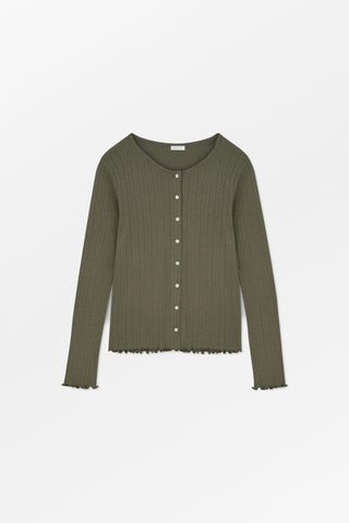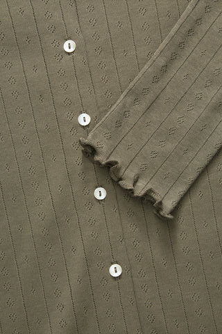Soft cotton cardigan with pointelle texture, baby lock edges and buttons.