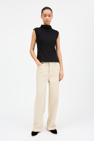 Eli is a slim fit sleeveless top with a high neck. Made from a textured jersey fabric, it has a shoulder seam that is slightly brought forward and double stitching at the hem adds a sporty touch.