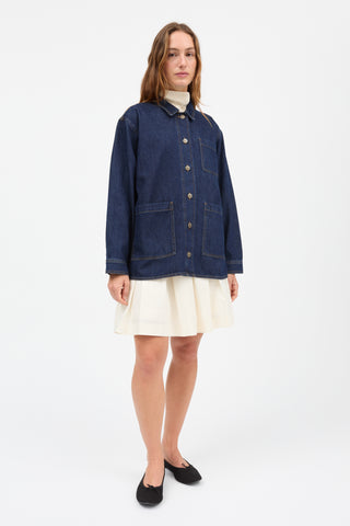 Henny Overshirt is a classic workwear inspired denim shirt with a straight fit and shirt-style collar. It has three patch pockets at the front, a yoke at the back and it fastens with shank buttons down the front. Twin-needle stitching appears around the pockets, on the cuffs and down the front to give a utility vibe.