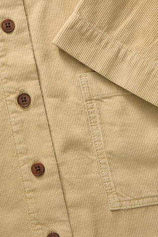 Soft corduroy shirt with classic collar and front pockets.