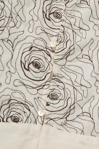 Buttoned top with all over rose embroidery.