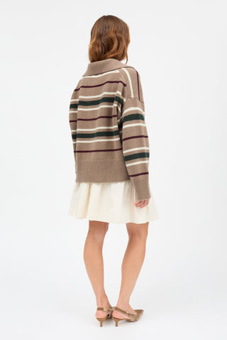 Paul V-Neck Jumper is a striped sweater in 100% merino wool with a wide, single-layer ribbed collar and a softly overlapping V-neckline. The jumper has a relaxed fit with a dropped shoulder and a raglan sleeve at the back, a subtle design detail that enhances its laid-back silhouette. Deep rib edges finish the cuffs and hem.