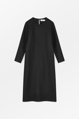Rosie Dress is a straight fitting, long sleeved dress with a clean round neck that falls to mid leg. Simple and refined, it is made from 100% wool and is lined in the body.