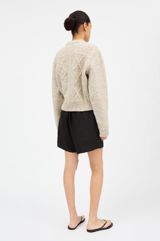 • Lace and peal stitches• Ribbed O-neck, sleeves and hem