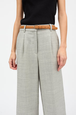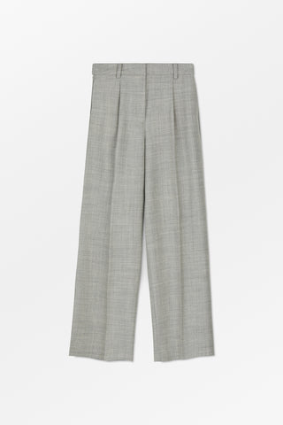 Thom Trousers are loose fit tailored trousers are made from lightweight 100% wool in a pinstripe design. They have pleats at the front, belt loops and pockets in the side seam.